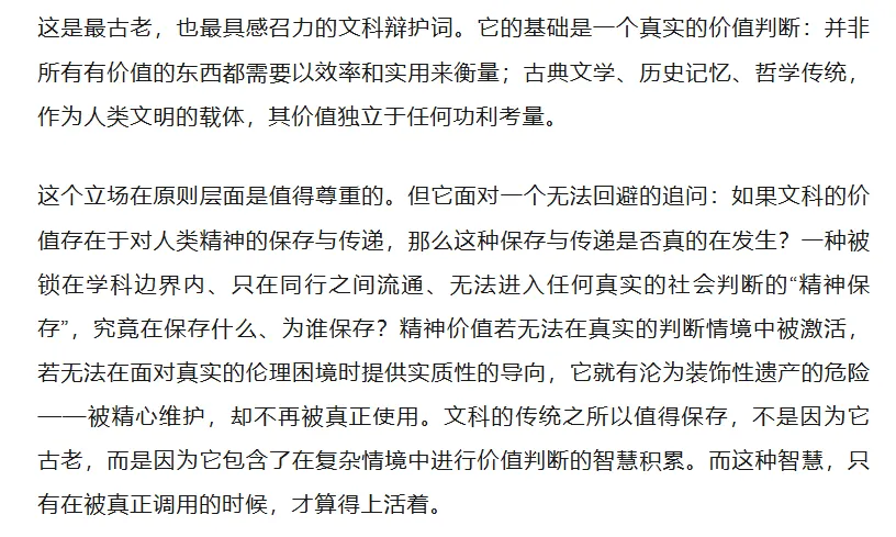 反驳三:文科的价值本来就不在“实用”,而在“保存人类精神”。