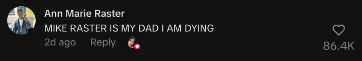 Ann Marie Raster第一时间留言:“MIKE RASTER 是我爸!!!我人没了!!!”