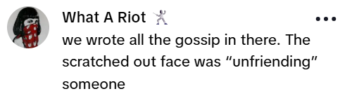 我们什么八卦都往里写,谁被划掉脸,就是被“拉黑”了哈哈。