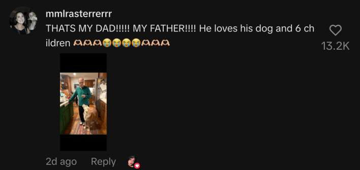 另一位Raster家的孩子更激动:“那是我爸!!!!我爸爸!!!!他爱他的狗和他的6个孩子 🫶😭🫶😭”