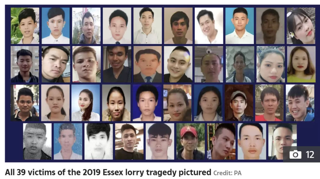 2019年,39名越南移民在英国埃塞克斯一辆卡车中死亡,这一事件震惊全球。相关案件中共有7人被判刑,总刑期超过92年。