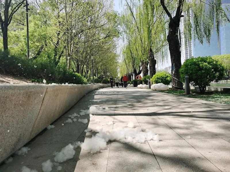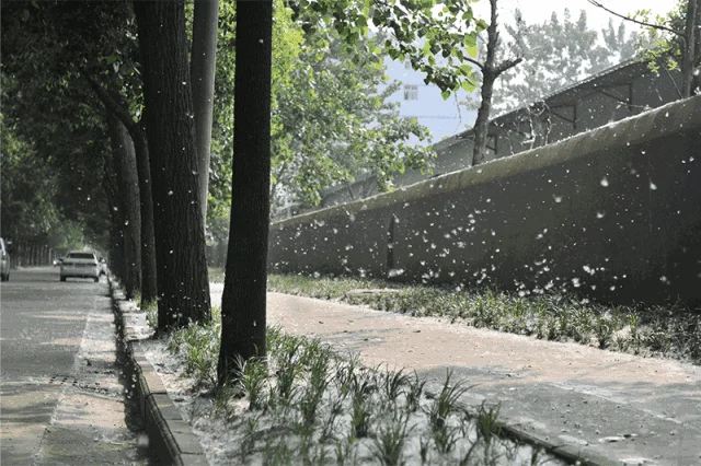 每年北京有四次飞絮,首先是毛白杨,然后像柳树、青黑杨杂种、黑杨等树种雌株种子依次成熟,每年这种飞絮的状态都要连续持续40天。