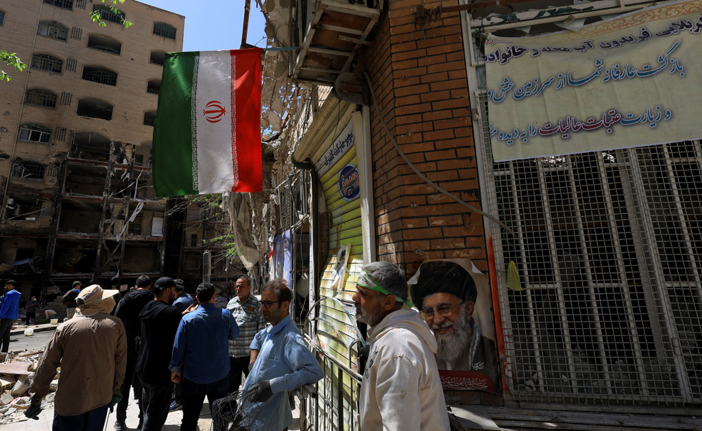 2026年4月14日,伊朗德黑兰记者于一处住宅建筑现场进行采访,该建筑于3月4日的空袭中受损。 (路透社)