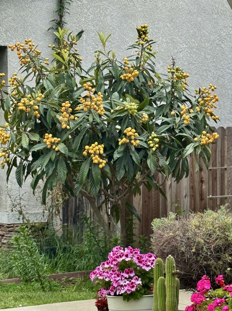 回来经过爸爸妈妈的家,家门口花团锦簇,想起来爸爸昨天嘱咐我,枇杷马上要熟了,让爱美丽来摘了吃。