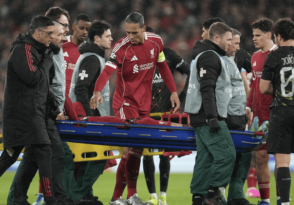 工作人员用担架将埃基蒂克抬出场。离场时,埃基蒂克双手抱头,他知道自己这次大概率伤得很严重。队友们纷纷过来安慰他。埃基蒂克下场后,利物浦最终0-2落败,总分0-4出局。