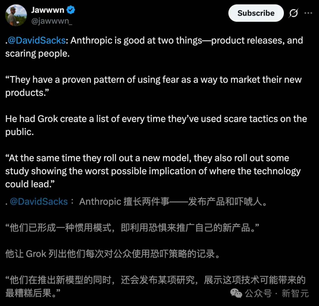 AI沙皇David Sacks猛烈抨击:Anthropic证明了自己擅长两件事:一是发布产品,二是吓唬人