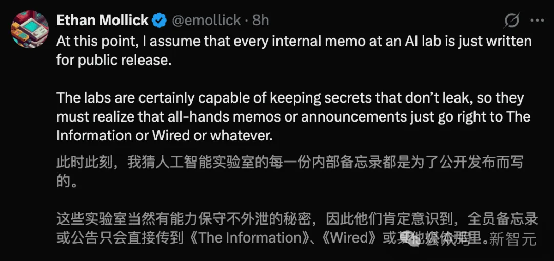 比较玩味儿的是,沃顿商学院教授Ethan Mollick直指,硅谷大厂备忘录就是为了公开才写的