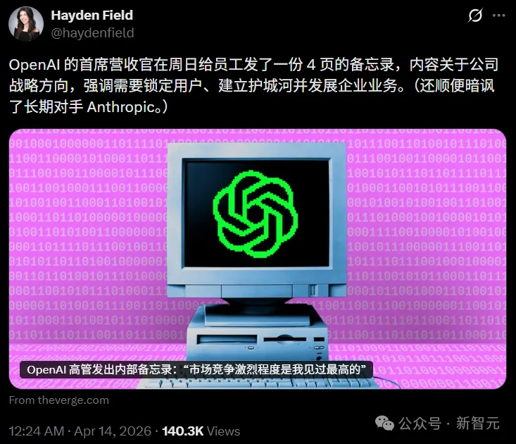在「关于竞争格局的一点说明」中,OpenAI向Anthropic连开三枪,直指其「致命软肋」。