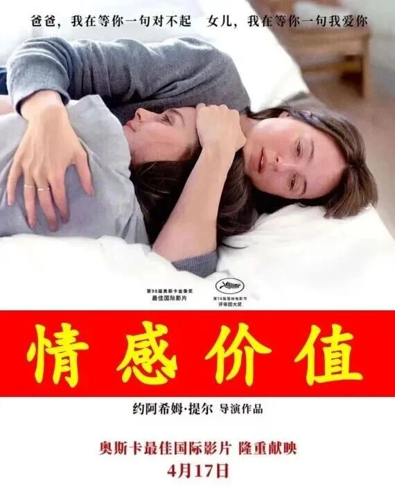 充满青春疼痛气息的slogan,让人根本联想不到原作《情感价值》克制与留白的文艺家庭片气质。