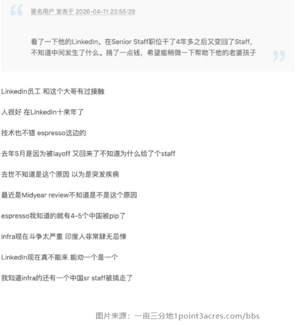 在团队内部情况方面,也有一些说法开始流传:有匿名用户称,相关基础设施团队(infra)近年来竞争激烈,内部压力较大;还有人提到,在某些项目中,绩效考核(PIP)情况并不少见,甚至有多名员工受到影响。