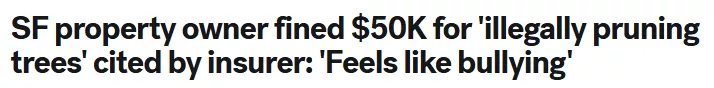 在美国旧金山,一位房主因为修剪自家门前的几棵树,意外陷入了一场高额罚款风波。