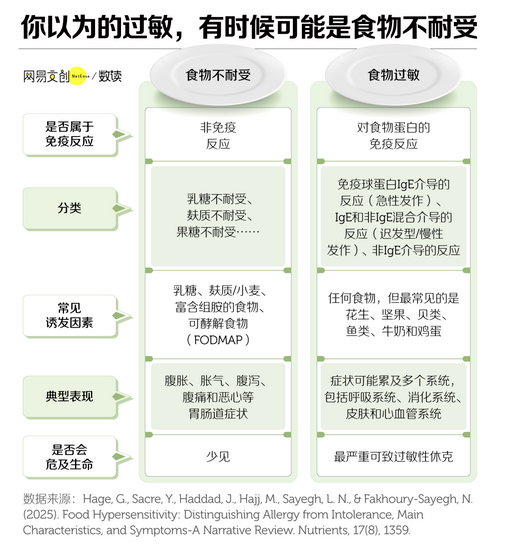 和食物过敏靠免疫系统亮红灯不同,食物不耐受并不涉及免疫反应,更像身体在消化或代谢某些成分时,单纯地处理不过来。