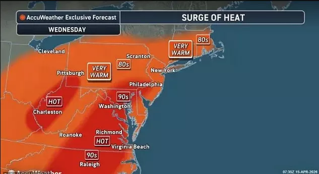 气象机构指出纽约这一天如果达到88°F,将是自1941年以来同期最热,华盛顿地区这波90°F高温,可能是自2013年以来最早的一次,有城市甚至有望打破近百年历史记录。