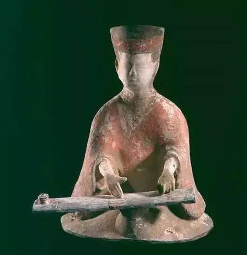 法国吉美博物馆藏、来自中国的弹筝陶俑(汉代)。 (取材自人民网)
