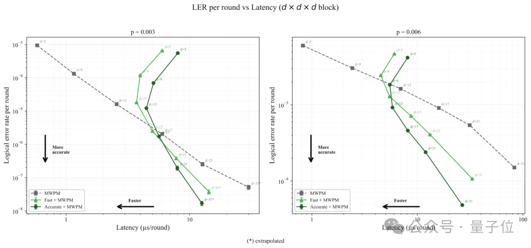 相比于单独的PyMatching方案,Fast模型能带来2.5倍加速,同时将准确率提升至原来的1.11倍。