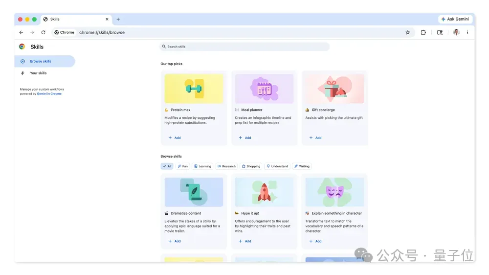 浏览器原地变龙虾:Chrome上线Skills量子位