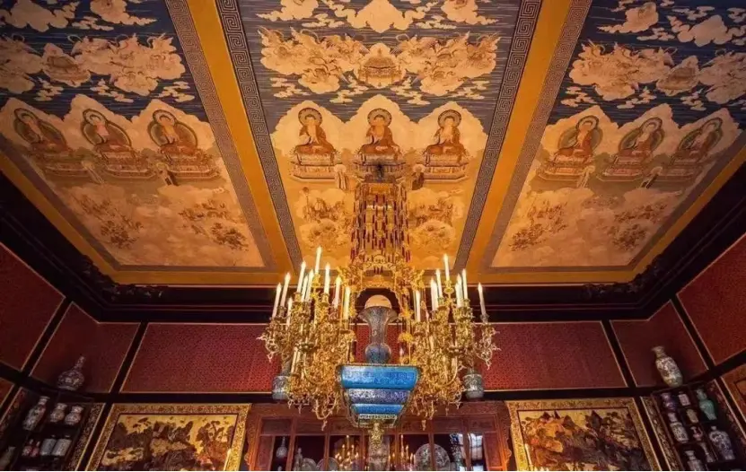 枫丹白露宫中国馆装饰天花板的缂丝佛画像