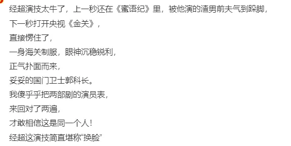 最近经超有两部剧播出,一部是做男主的《金关》,讲述海关跟走私人员斗智斗勇,根正苗红的都市正剧。