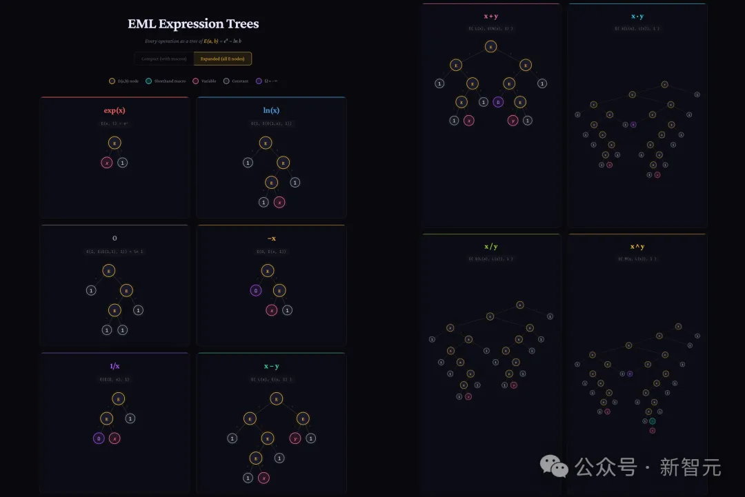 而奥德尔齐沃莱克发现的eml算子,做了一件完全类比的事情——只不过它的战场不是离散的0和1,而是连续数学的整个疆域。