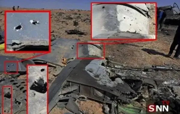最能说明问题的还是飞机残骸本身,多张现场高清照片里,C-130的机身布满了密集孔洞,孔洞边缘呈现明显的金属撕裂状(下图1),这是高速弹药破片击穿机体的典型痕迹。