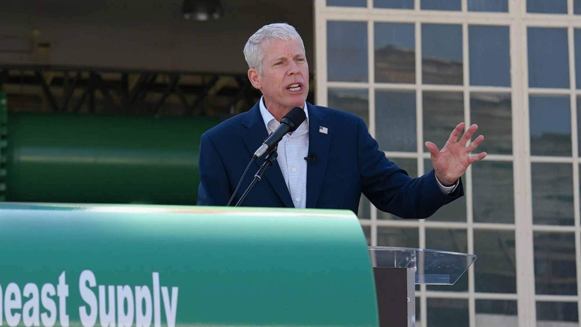 2026年4月14日,美国能源部长赖特(Chris Wright)在纽约出席天然气管道动土仪式时发表演讲。(X@ENERGY)