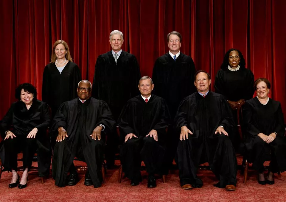 美国保守派大法官艾里托(前排右2)传出有退休之意。(路透社)
