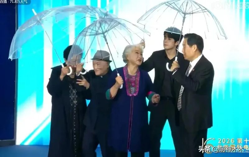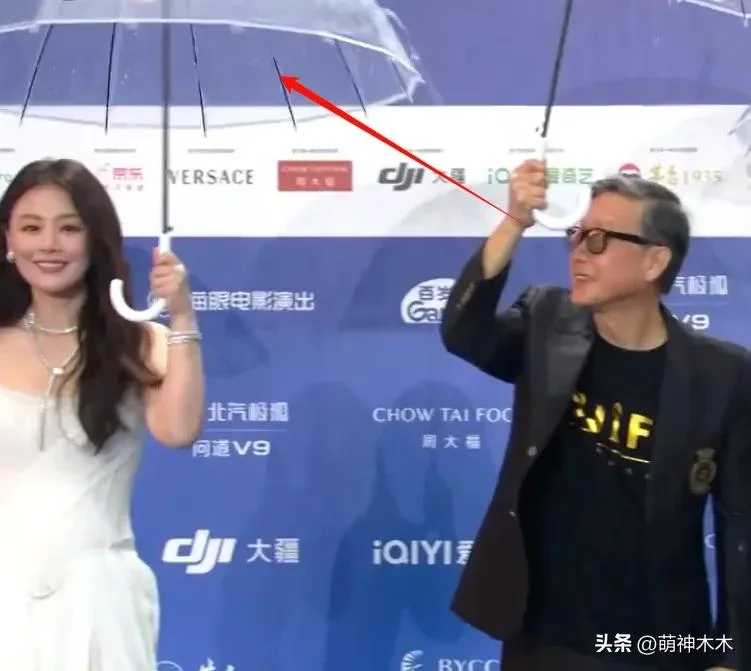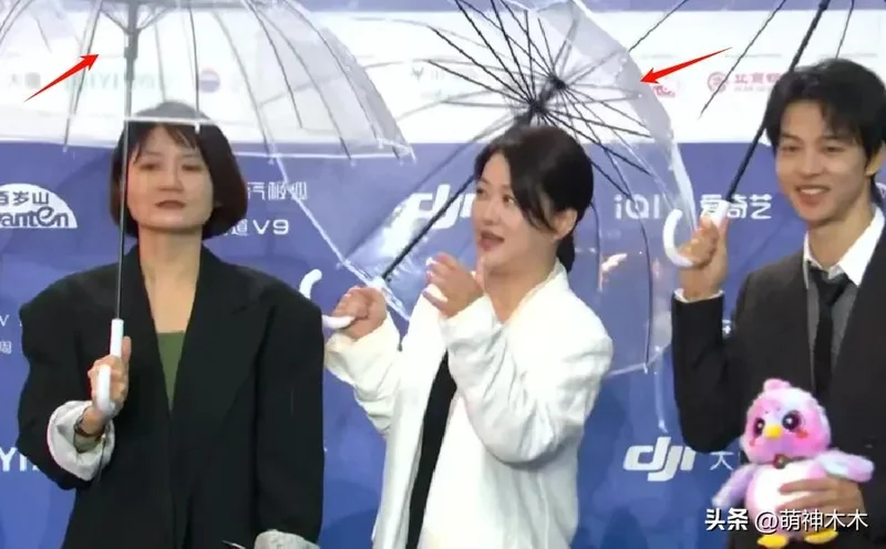但有的人打伞似乎只关注自己,逼得旁边的制片人、编剧应萝佳雨伞都斜着打了,后来更是直接把自己的伞放到了身后,但两边的人似乎都无动于衷,