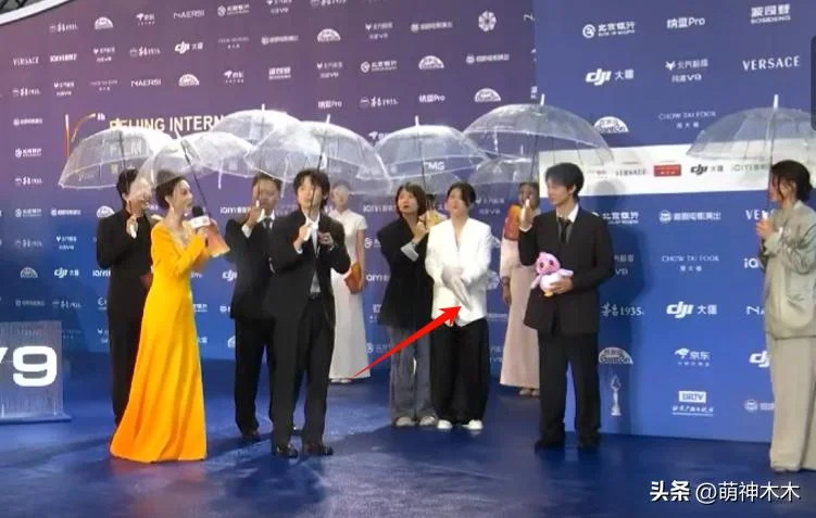 马思纯不知道是不是怕伞把挡住镜头,拍大合照的时候频繁转伞,伞上的雨水似乎都甩到了旁边人的身上,搞得旁边的人频频看向马思纯。不过马思纯似乎没有注意到这个细节,还笑呵呵的,有点儿粗心哦!