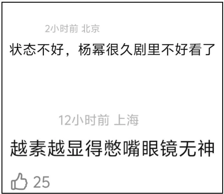 不知道从什么时候开始,杨幂很容易显出疲惫,与其他85花的双目无神不同,杨幂更像是气血不足,正如网友所说,明明本人是大明星,出演的角色亦是大女主,杨幂却是暮气沉沉的。
