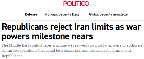 这一期限可能迫使川普政府更加公开地阐明最终目标,或者在结束中东战争方面取得重大进展,以维持共和党的支持。