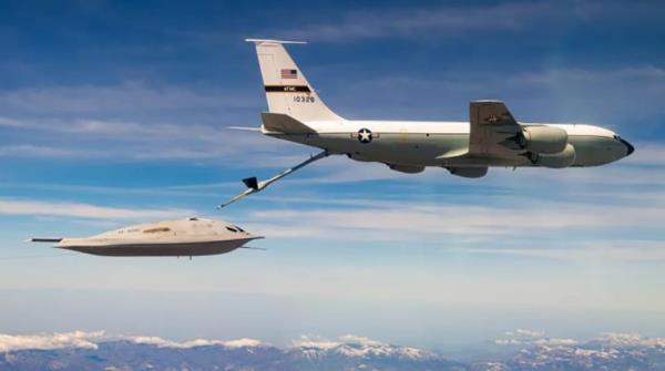 B-21空中加油的画面。/诺斯罗普・格鲁曼