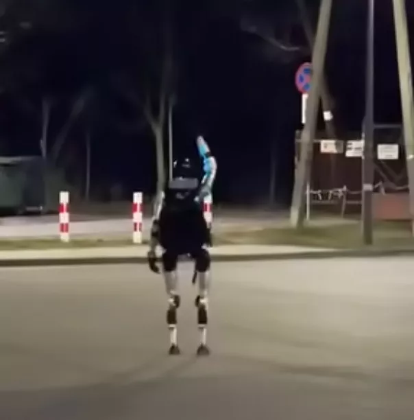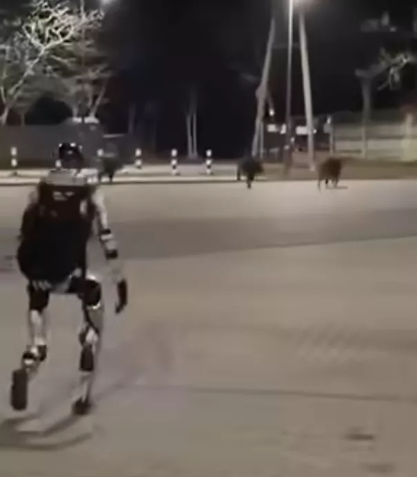 视频中,3只野猪于黑夜在华沙街头一个停车场奔跑,随后可见一个人形机械人追赶牠们。野猪逃至树林后,机械人停下并向牠们挥手“告别”。