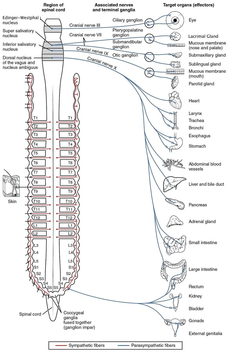 自主神经系统组成(图片来源:OpenStax College - Anatomy & Physiology, Connexions Web site. CC BY 3.0)