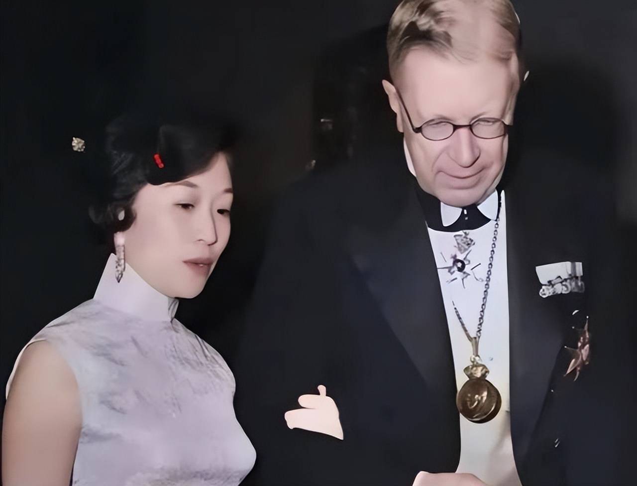 说起这张照片(下图)得从1981年5月7日那天讲起,杜聿明在北京去世以后,女儿杜致礼和丈夫杨振宁当时在美国,得到消息就马上安排回国的事。追悼会本来安排得早一些,因为要等他们赶回来就推迟了,一直等到5月25日才在全国政协礼堂举行。那天活动现场,杜致礼和杨振宁站在一起留下了照片,他们的神情里满是悲痛,照片就这样记录下了当时的情形。