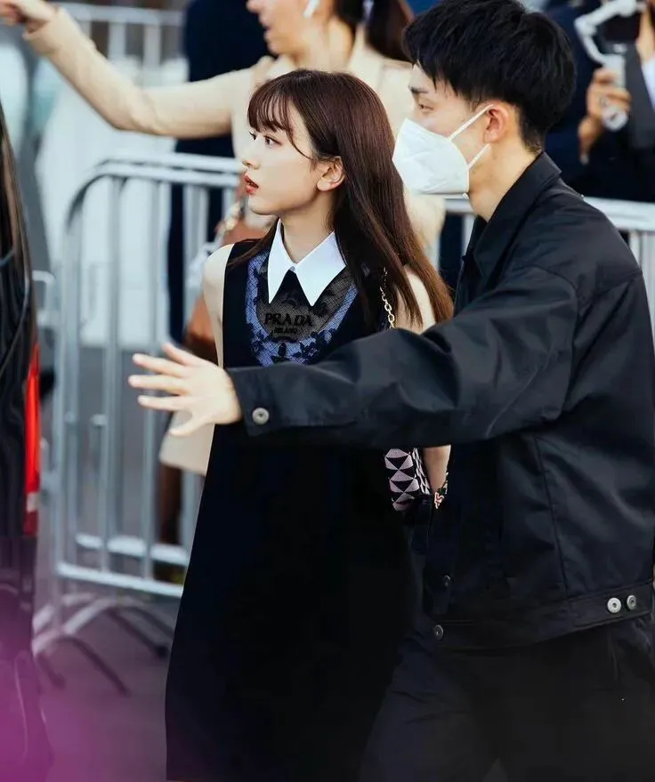 虽然女生走在前面口罩、鸭舌帽全副武装,西装男紧随其后,也同样把口罩焊在了脸上;但女生身上带着大logo的Prada皮夹克和男生的Prada领带,还是暴露了二位“绝非普通人”的气场。用目击者的话说就是,尽管没有什么过分亲密的举动,但穿搭处处透着情侣间的小心机,无形之中的“秀恩爱”最虐狗……