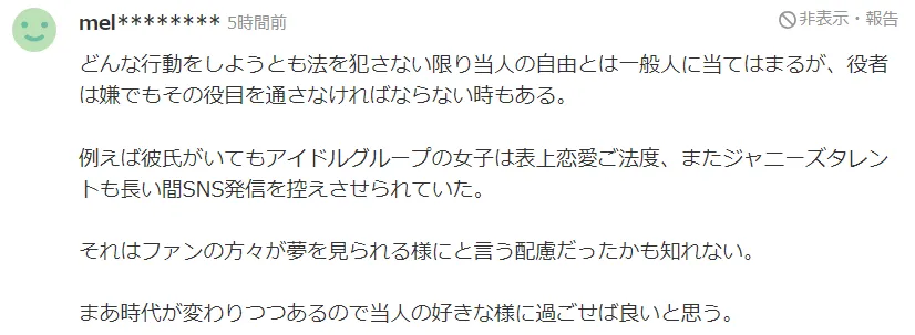 这或许是为了让粉丝们能够“做梦”而做出的一种考量吧。不过嘛,时代也在变,我觉得还是让她按自己喜欢的方式生活就好。
