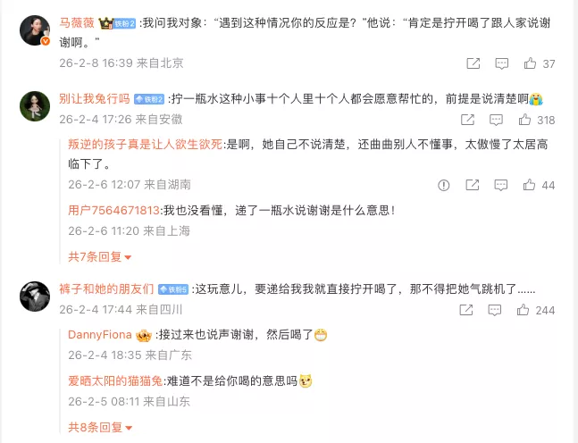 另一边,一个百万粉丝的女作家,在飞机上把水瓶递给陌生男大学生,不说诉求,等他拧开,未遂,便在心里给人打上“没上过班”“当领导累死”的标签,然后把这段经历发到网上,期待共鸣,未料迎来群嘲。