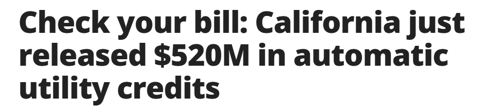 · 加州州长加文·纽森(Gavin Newsom)宣布,从本月开始,将为数百万加州居民自动提供5.2亿美元的天然气账单抵免。