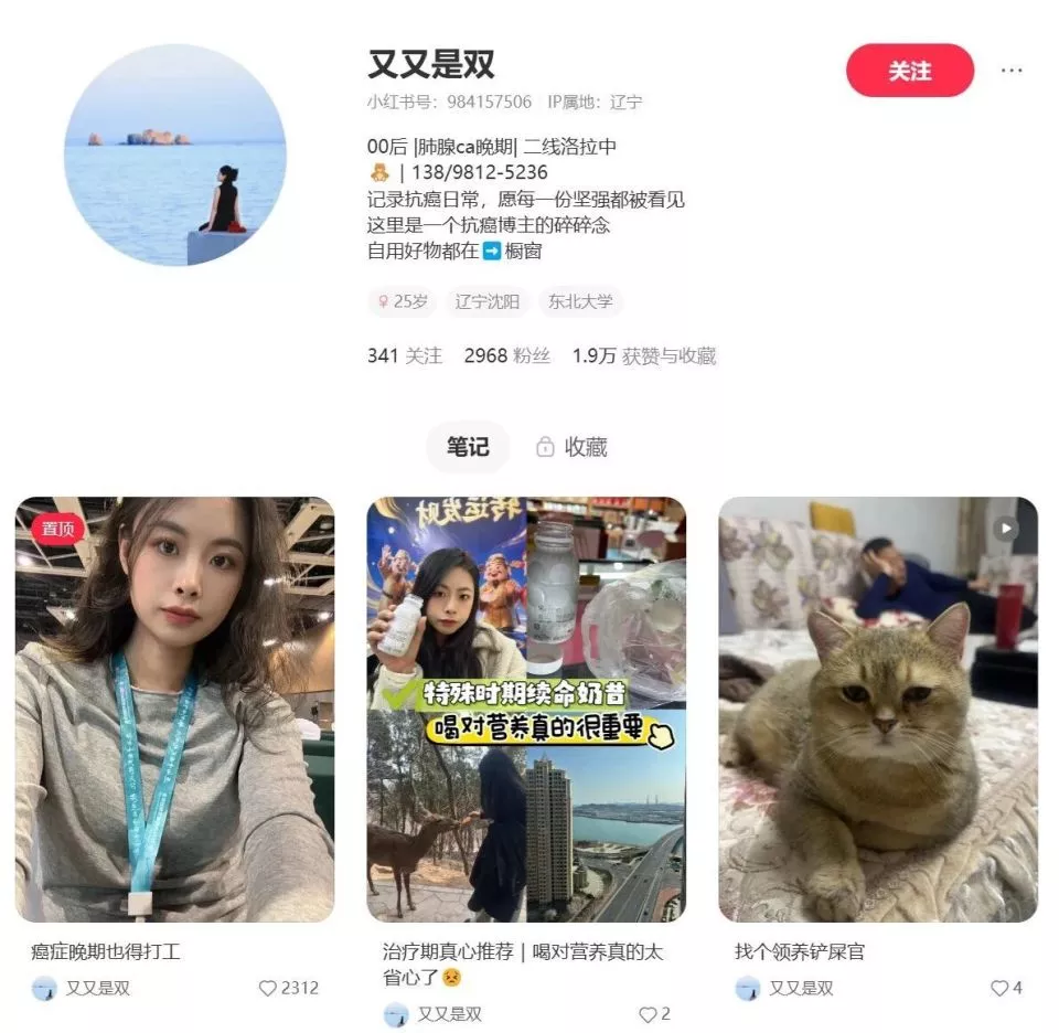 小夏在社交媒体发布抗癌日常,受到不少网友关注,图源小红书@摸鱼小夏