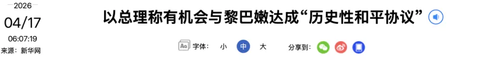 以色列总理内塔尼亚胡16日晚发表声明称,以色列有机会与黎巴嫩达成一项“历史性和平协议”,将在维持军事压力的同时推进相关谈判。