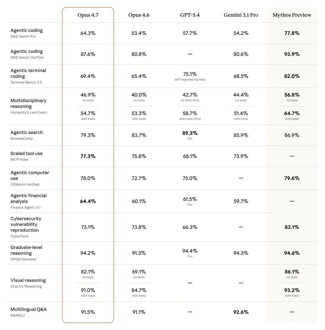 于是在2026年4月17日,Anthropic发布了Claude Opus 4.7。
