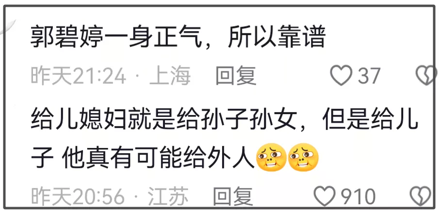 这样财产给儿媳妇,其实也就等于给了孙子孙女,但是给儿子就不一定了。之前网络热梗,“妈妈有钱孩子就会很有钱,爸爸有钱那就会有很多兄弟姐妹”,放在豪门来看,也很适用。