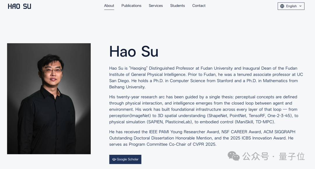 实际上,早在官宣之前,UCSD 和复旦校内已有传言流出,称具身智能领域的领跑者苏昊即将赴复旦任教。