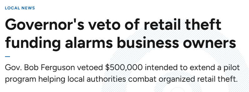 据4月16日报道,在州长否决了一笔50万美元的资金——这笔钱原本是用来延长一个打击有组织零售盗窃的试点项目后,华盛顿州的商家们警告称,他们担心,在偷窃本来就越来越多的情况下,这个决定可能会让小偷更加肆无忌惮。