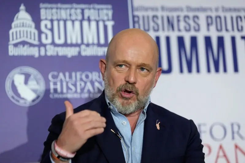 共和党候选人希尔顿在最新加州州长选举民调中的支持率仍高居第一。(美联社)