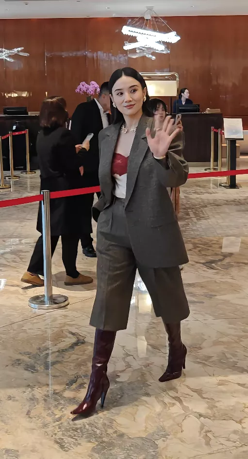 单手插兜,中分头、大西装,搭配尖头皮靴,好飒一女的。走上红毯更是气场全开,屏幕外的粉丝们只想大声喊“妈妈”。