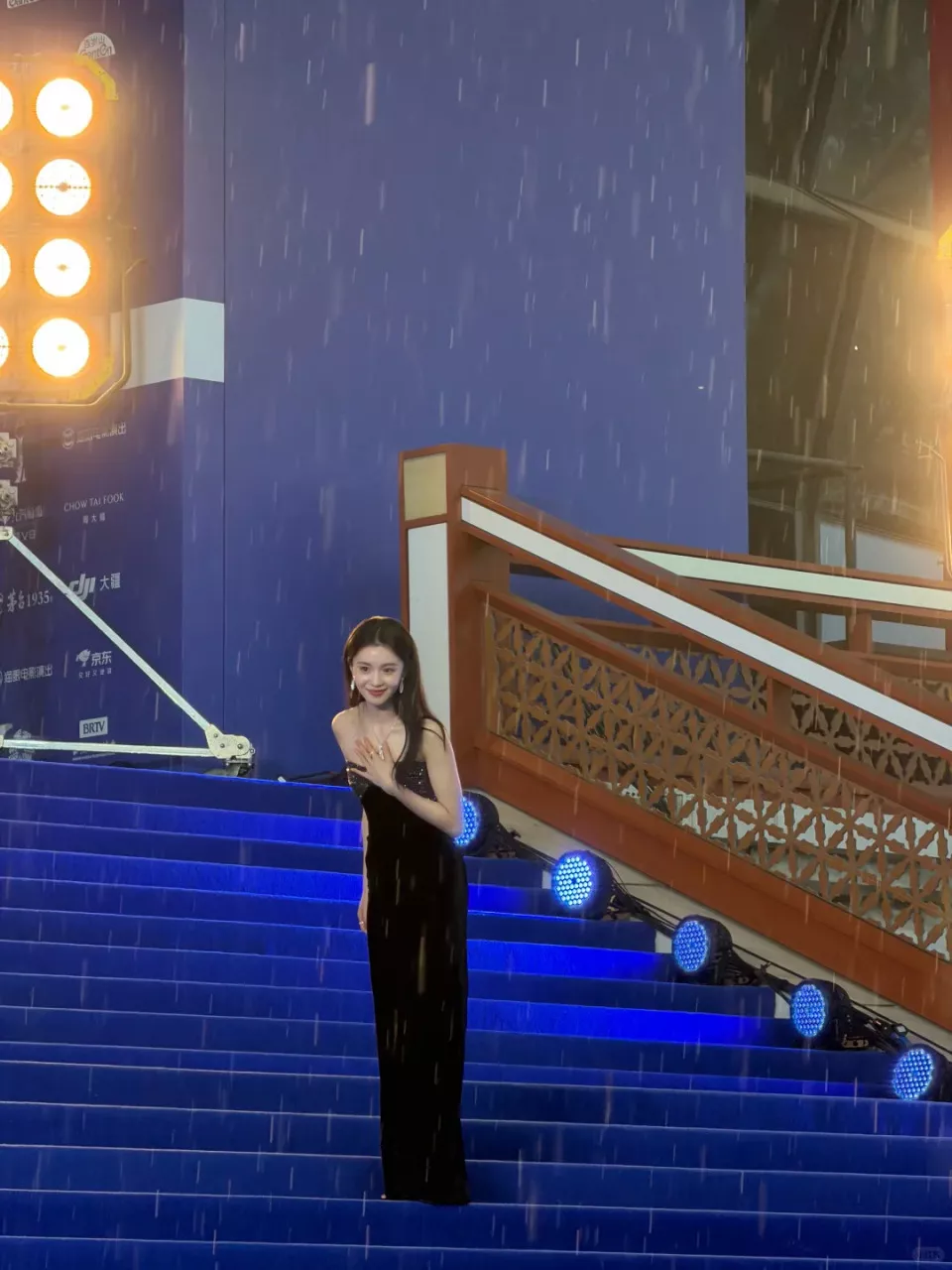 走上“蓝毯”阶梯的刘浩存没有撑伞,还特意停留和粉丝打招呼,这一回眸就贡献神图,雨中精灵既视感。
