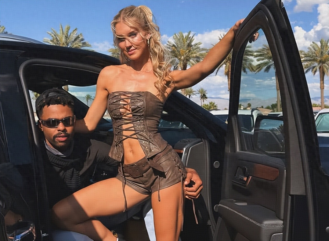 照片中,两人在车上深情相拥,劳拉身着性感的“辣妹装”,妩媚动人,非常性感,作为“NBA顶级花魁”,劳拉拥有极品身材,让人羡慕。