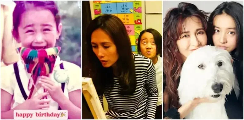 大女儿心美性格比较鬼马,直接调侃老妈说“今天是辣妹的生日!”还特意晒出了自己在老妈背后做鬼脸的合影,一看就是家庭关系很轻松融洽的那种。