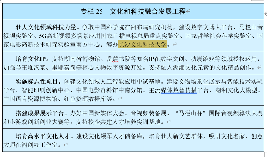 近日,湖南省政府官网公布了《湖南省国民经济和社会发展第十五个五年规划纲要》。其中,在“壮大文化领域科技力量”栏目中提到,筹办长沙文化科技大学。